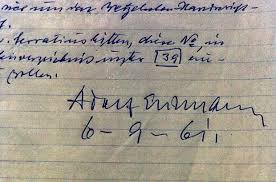 This is the signature of Adolf Eichmann. He is the behind the scenes Nazi who ruled with a pen and sent all of the people to respective camps and did many crimes against humanity.